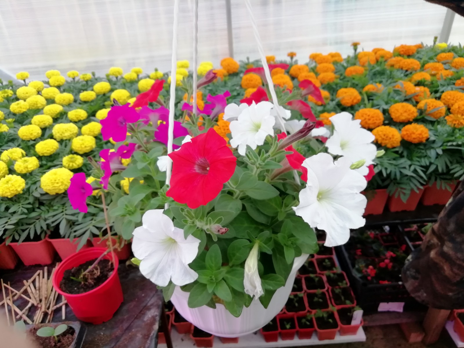 так же в наличии кашпо с ампельными петуньями, пеларгонии зональные